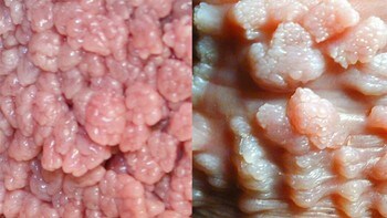 Det finnes over hundre forskjellige HPV virus. Kondylomer er gjerne ruglete på overflaten. Hvis vortene er på fuktig hu det vil si på slimhinner i nærheten av skjeden eller på selve penis , er de typisk i samme farge som huden og er også myke. Hva er kjønnsvorter ? Vortene kan også vokse rundt nesen eller munnen.